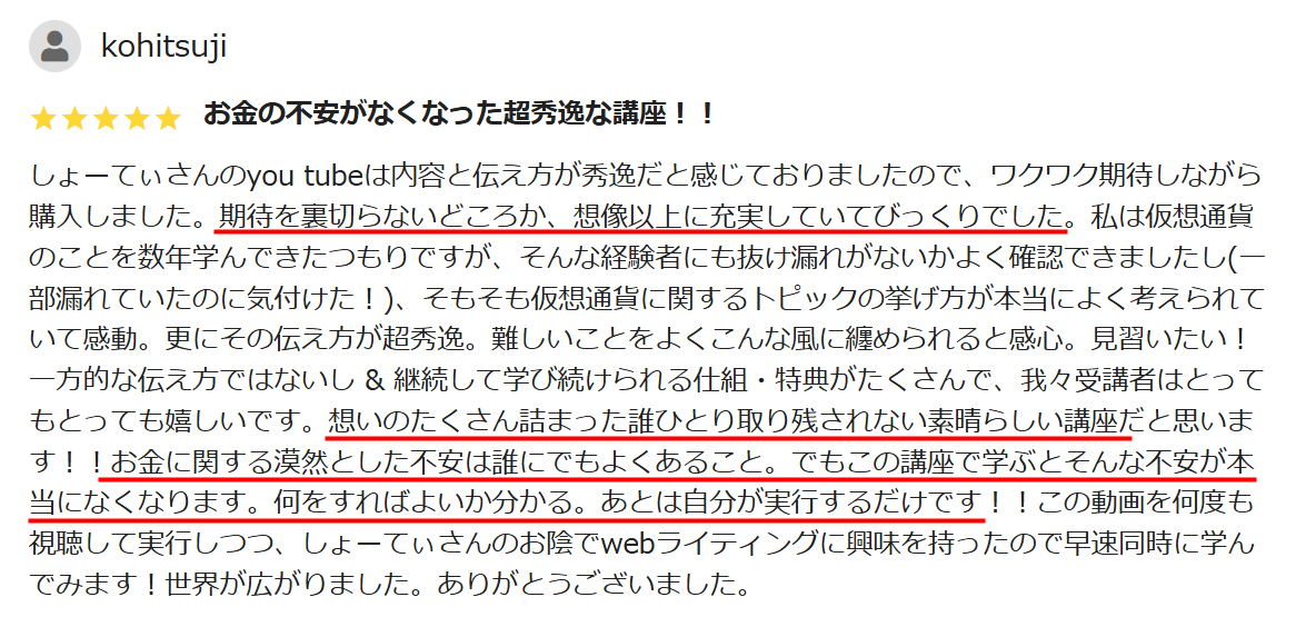 感謝の長文レビューをいただいております。